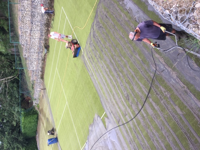 The sand on the playing surface is removed using our compressed air method, or high pressure washing method to a depth of the carpet to remove dirt and compacted sand. It is then refilled with the new clean sand to the correct levels. The surface is then drag brushed extensively to give an excellent high quality finish.
